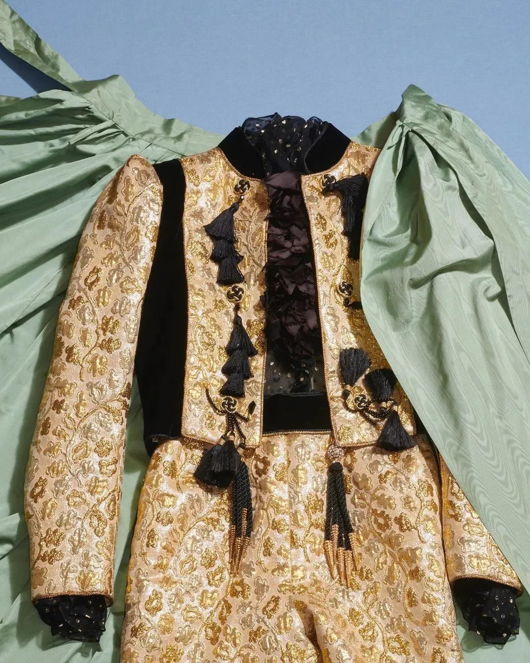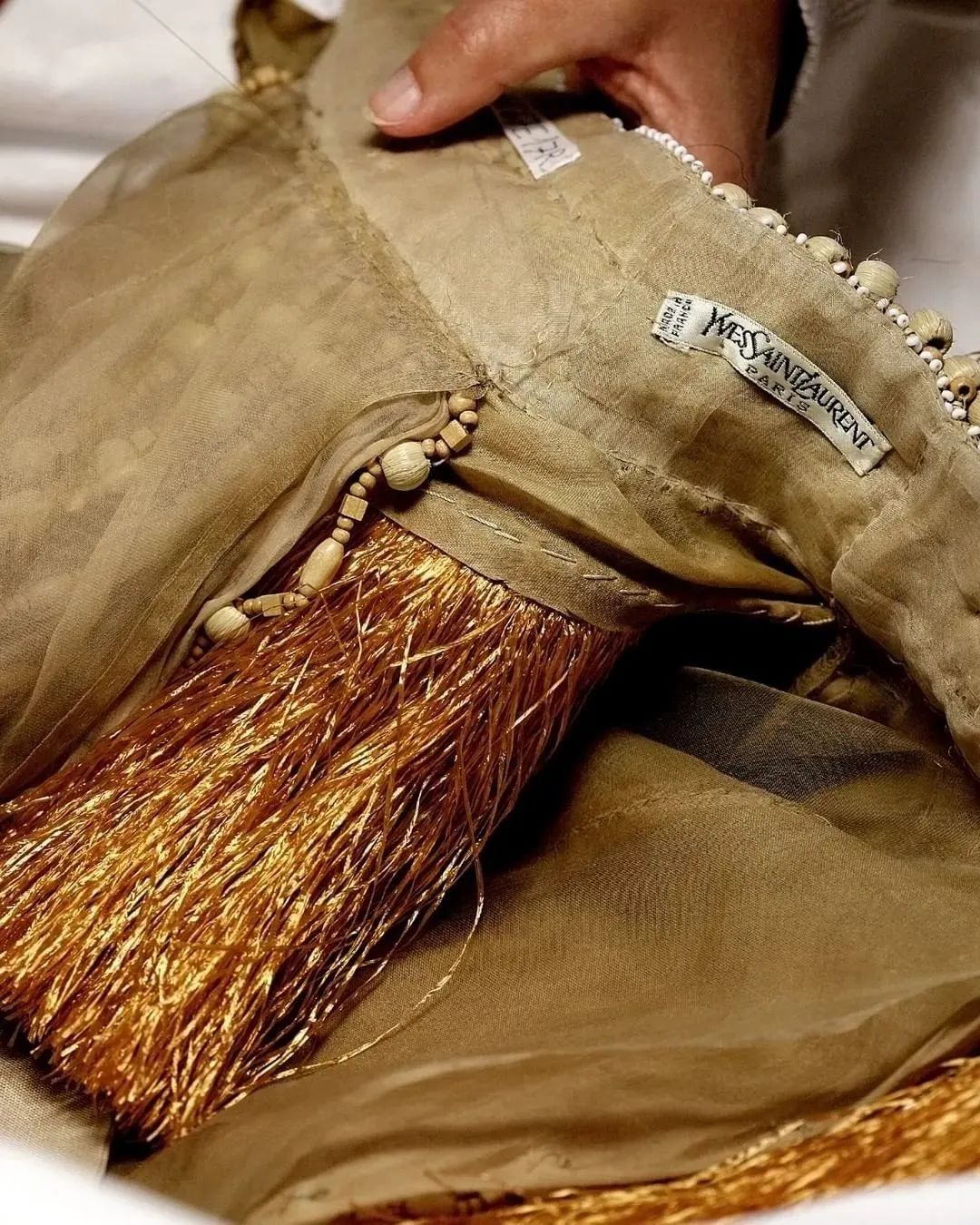 件高定与配饰中甄选出展品并非易事从巴黎伊夫·圣罗兰博物馆中的上万,结构:“五个章节中包罗了安排师与金色之间的联络Elsa Janssen如斯注脚这回展览的谋篇,Laurent平居安排中以金色为点睛之笔的安排Bijoux de jour表示了Saint ;出了过往安排中的巴洛克气概Coup d eclat突,克造寰宇所打造的铠甲以及气概之下为女性;aint Laurent处事与生存中与派对相合的时间Time to shine将眼光着眼于Yves S; Falaise与Saint Laurent先生40年的配合Light me up则是通过艺术家Loulou de La,中流淌的荒唐与华侈来表示金色珠宝安排;nt Laurent先生宠爱的文学艺术和献技寰宇入手终末一个局限En letters d or从Sai,佳作中的文艺气质携带公共一览时装。”