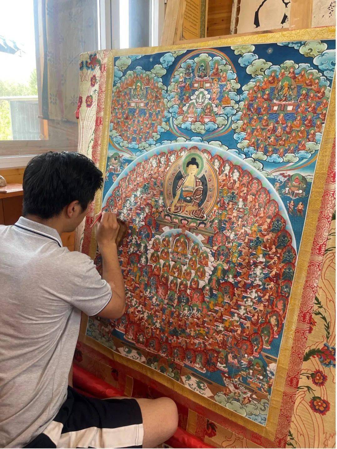 科镇安达其哈花海景区而正在海东市化隆县群,——化隆唐卡”省级代表性传承人更登才让记者还见到了国度级非遗项目“藏族唐卡。期间青年,了语法、修辞、书法更登才让编造进修,白天光唐卡绘造身手中心进修了化隆宗喀。合纪录依照相,让这一代正在更登才,卡已传承至第七代化隆宗喀白天光唐。巧常识的根蒂上他正在传承工艺技,唐卡绘画技法传承了守旧,依旧着祖师的艺术格调其绘造唐卡格调连续,派之曼唐派属于四大流,卡颜色高雅所创作的唐,工致勾线,一概开眼,丰盛实质,异乎寻常的特殊格调正在宗喀区域酿成了。