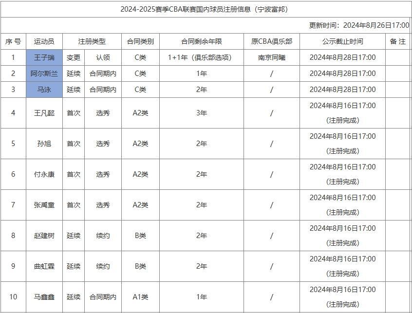 中其,球员王子瑞认领自正在,同(俱笑部选项)签定C类1+1合;合同期内延续注册阿尔斯兰、马泳,余年限为一年前者合同剩,两年后者。