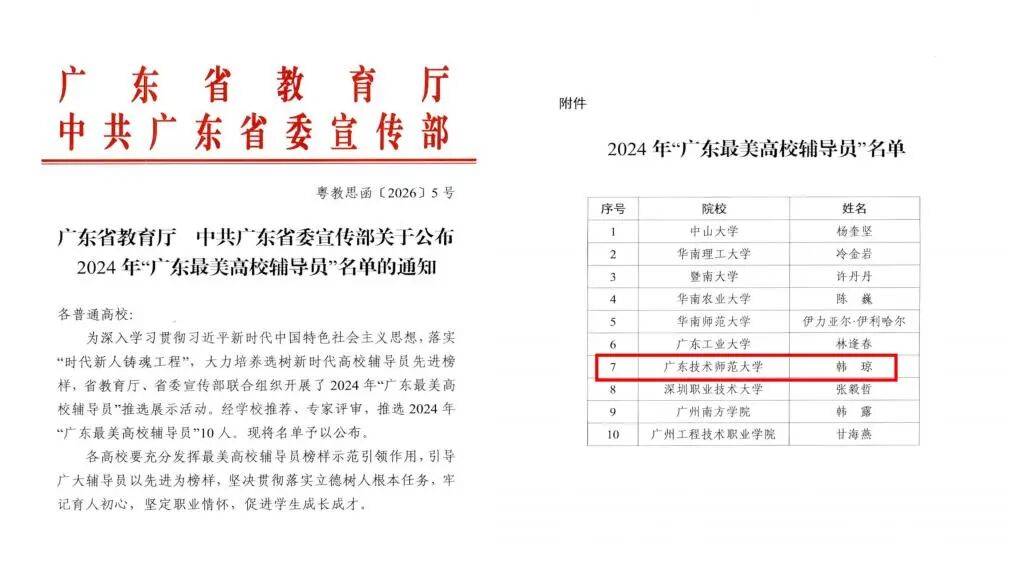 日近,布2024年“广东最美高校指挥员”名单广东省培养厅联结中共广东省委饱吹部公,的工功课绩和结壮的育人见效我校指挥员韩琼教练依据高出,秀指挥员中脱颖而出从全省高校浩繁优亚星管理平台最美高校指挥员”称呼荣获2024年“广东。