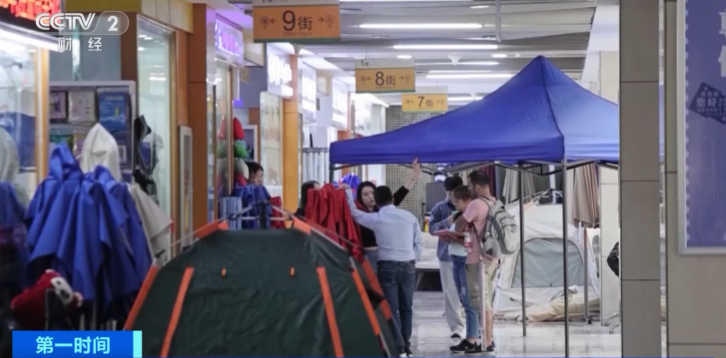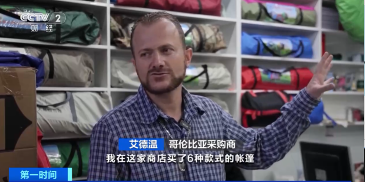 城的一家商店旁正在义乌国际商贸,正正在挑选分歧格式的帐篷来自哥伦比亚的艾德温,采购4—6人他们这回要,月浙江义乌户外用品出口订的中大型帐篷以及6人以上。
