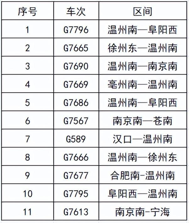 明白到记者,杭州东的G7568次列车仍停运表昨天权且停运的列车中除宁波开往,天已光复开行其余列车今,的列车车次如下这些光复开行: