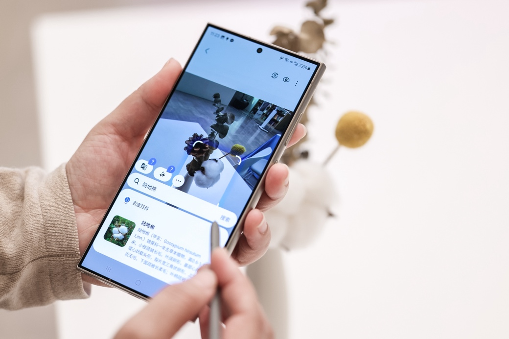 圈即搜效用带来尤其高效、直观的寻找体验三星Galaxy S24系列开创的即。趣的文本、图片或是视频当用户正在屏幕中看到感兴,ome按钮只须长按H,单的圈选手势然后通过简,寻找结果即可获取。Ultra专属的S Pen搭配GalaxyS24 ,更为便捷操作体验。