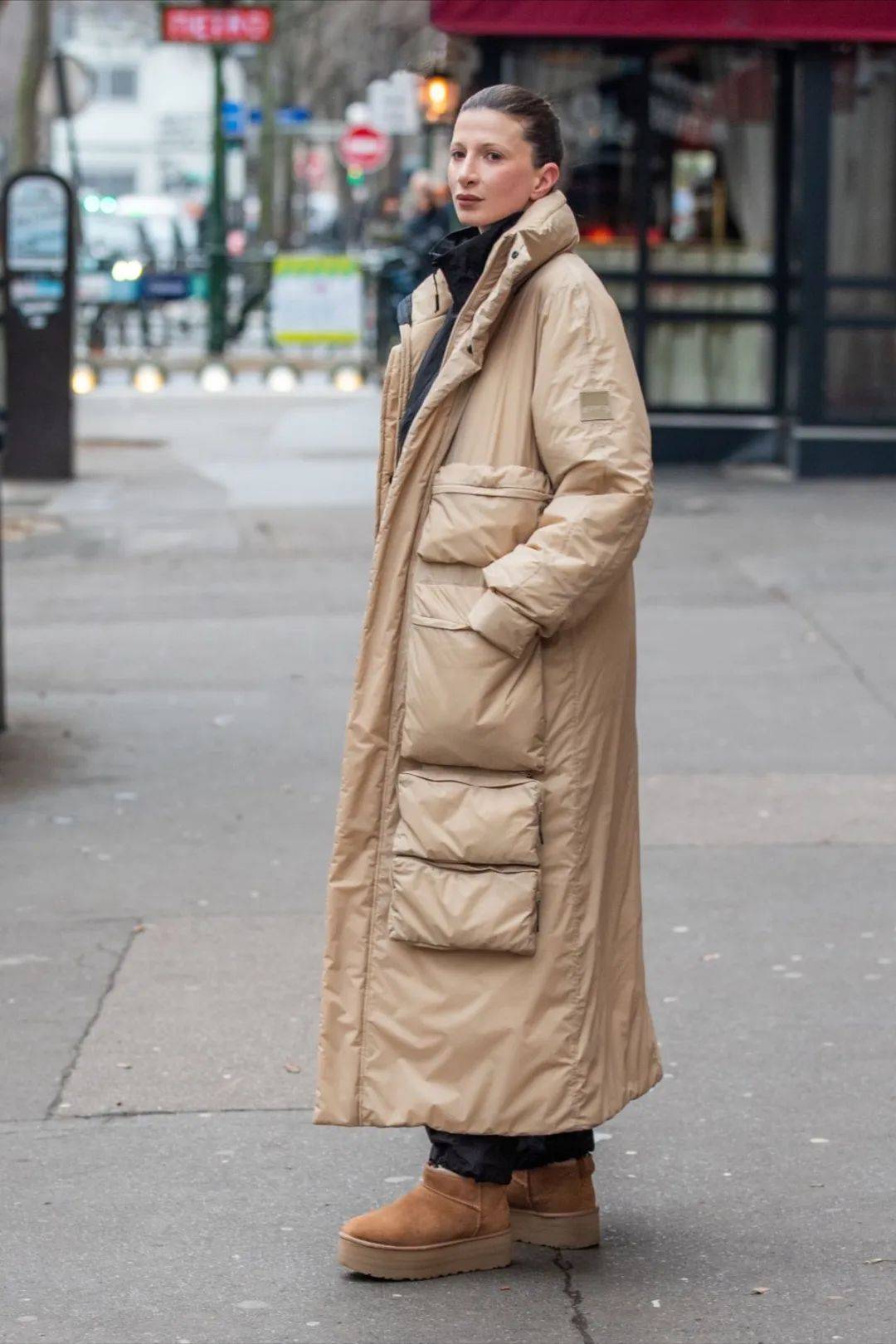 款羽绒服卡其色长,玄色幼夹克内搭一件,人的气质和立场能很好地表达了,玄色运动裤搭配一件,觉上的高级不只仅是视,齐备魅力更是穿出,咖色平底鞋搭配一双,超脱的穿出,的风率性格