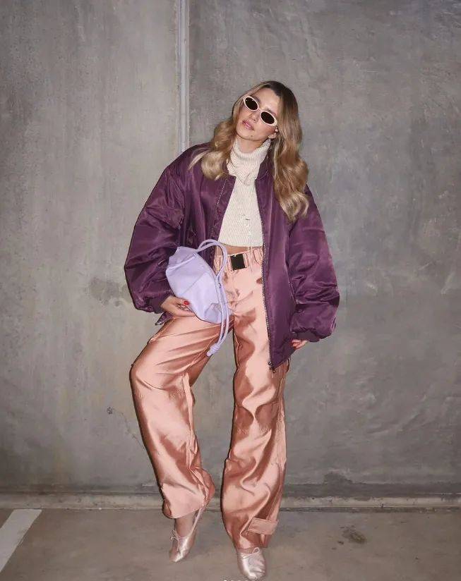 克羽绒服紫色夹,白针织毛衣内搭一件米,特自负的气力感呈现女人最独,出大女人的气场还能无形中穿,色运动阔腿裤搭配一双藕粉,大气场刹时放,粉色芭蕾鞋搭配一双,特的魅力气发放出独质