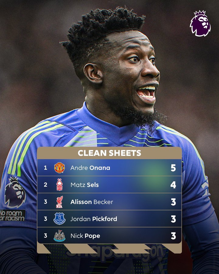5日讯 今日虎扑11月1,季英超零封榜前5名英超官推列出了本赛,他的第一个金手套奖吗?”数据显示配文到:“曼联门将奥纳纳会获得,零封排扫数门将中第1名曼联门将奥纳纳以5场。联赛出战11场奥纳纳本赛季,8次扑救功勋了2。